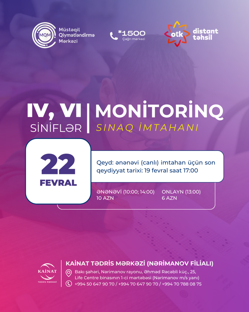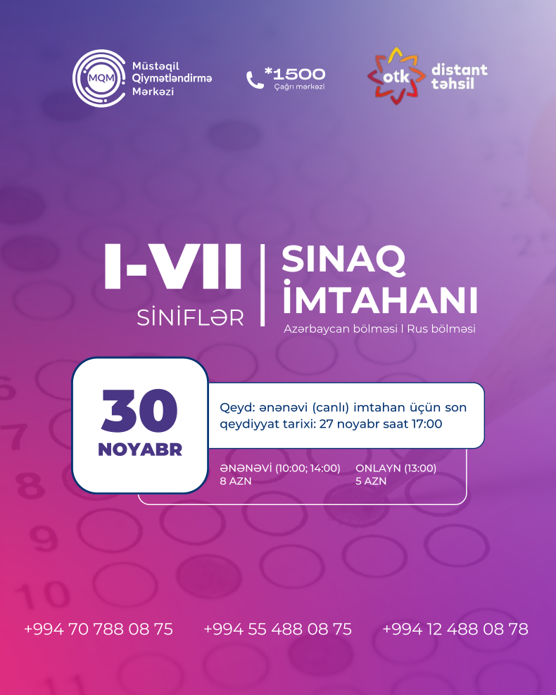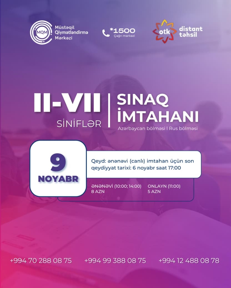VII, VIII, IX, X, XI nəzərinə? 14 iyun tarixində online sınaq imtahanımız baş tutacaq?