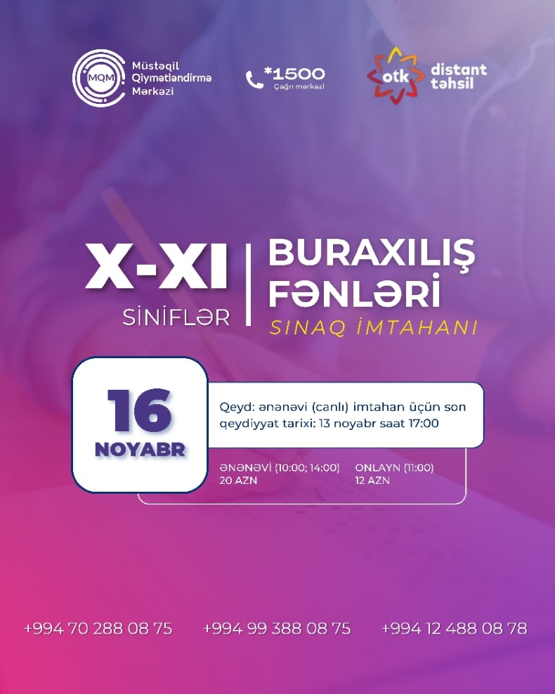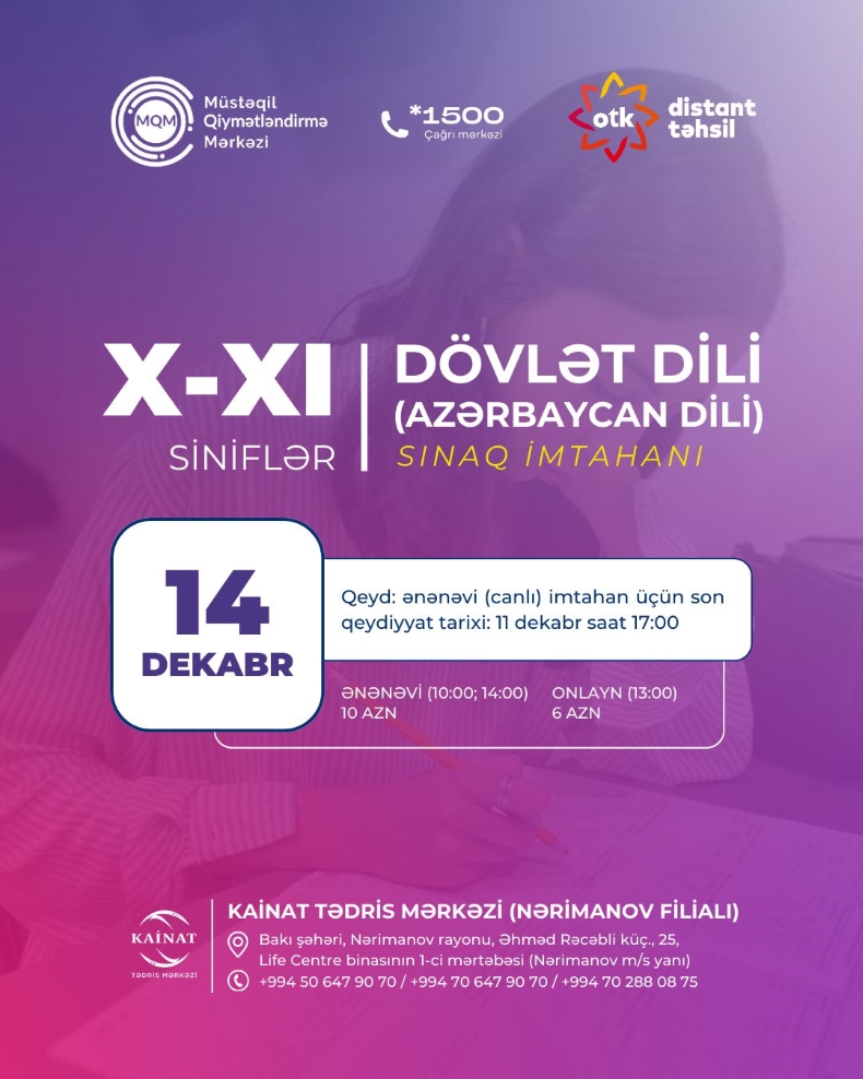 VII, VIII, IX, X, XI nəzərinə? 14 iyun tarixində online sınaq imtahanımız baş tutacaq?
